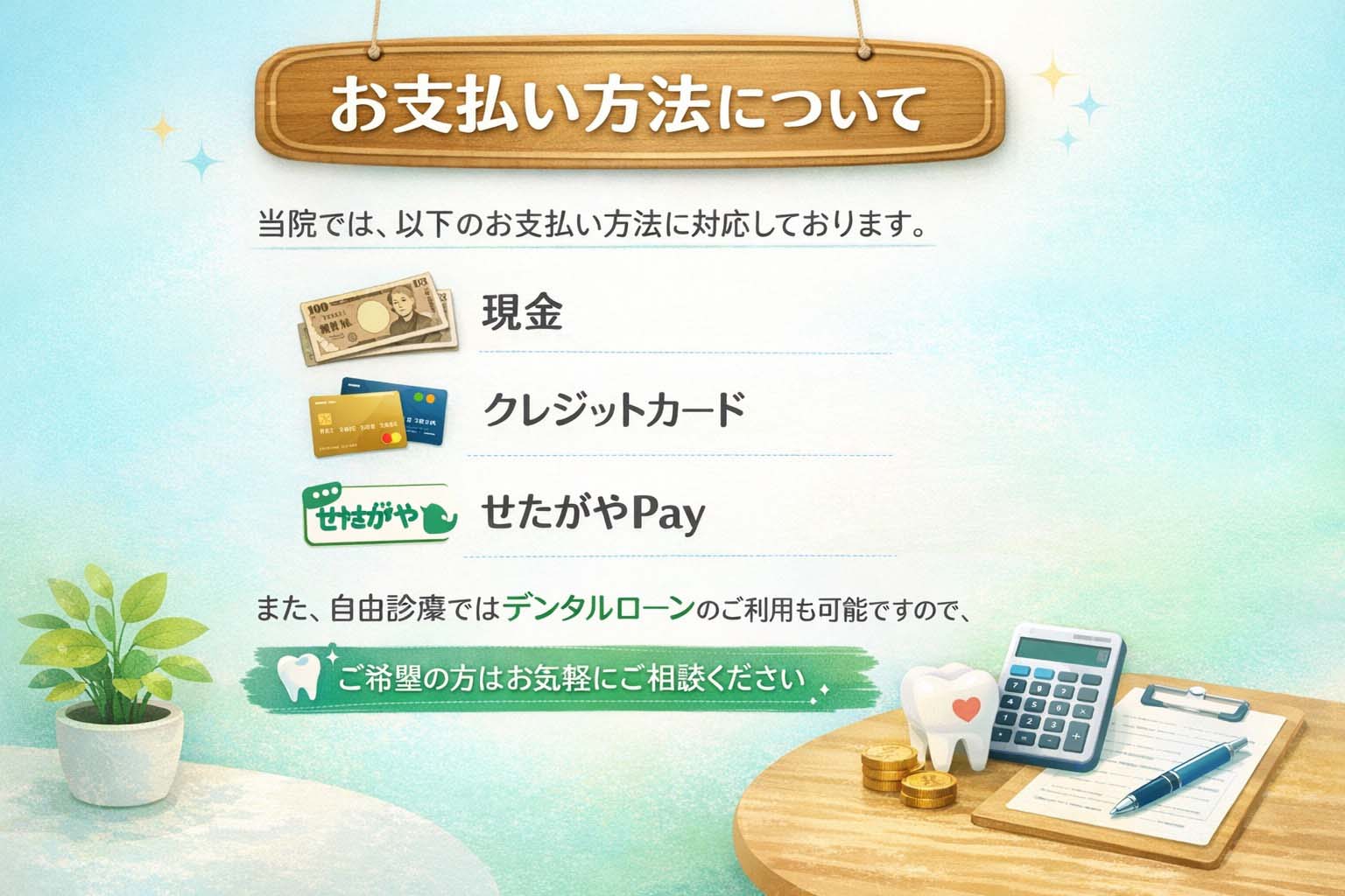 皆さまのお口のお悩みに対応できるよう様々な診療科目をご用意しております。