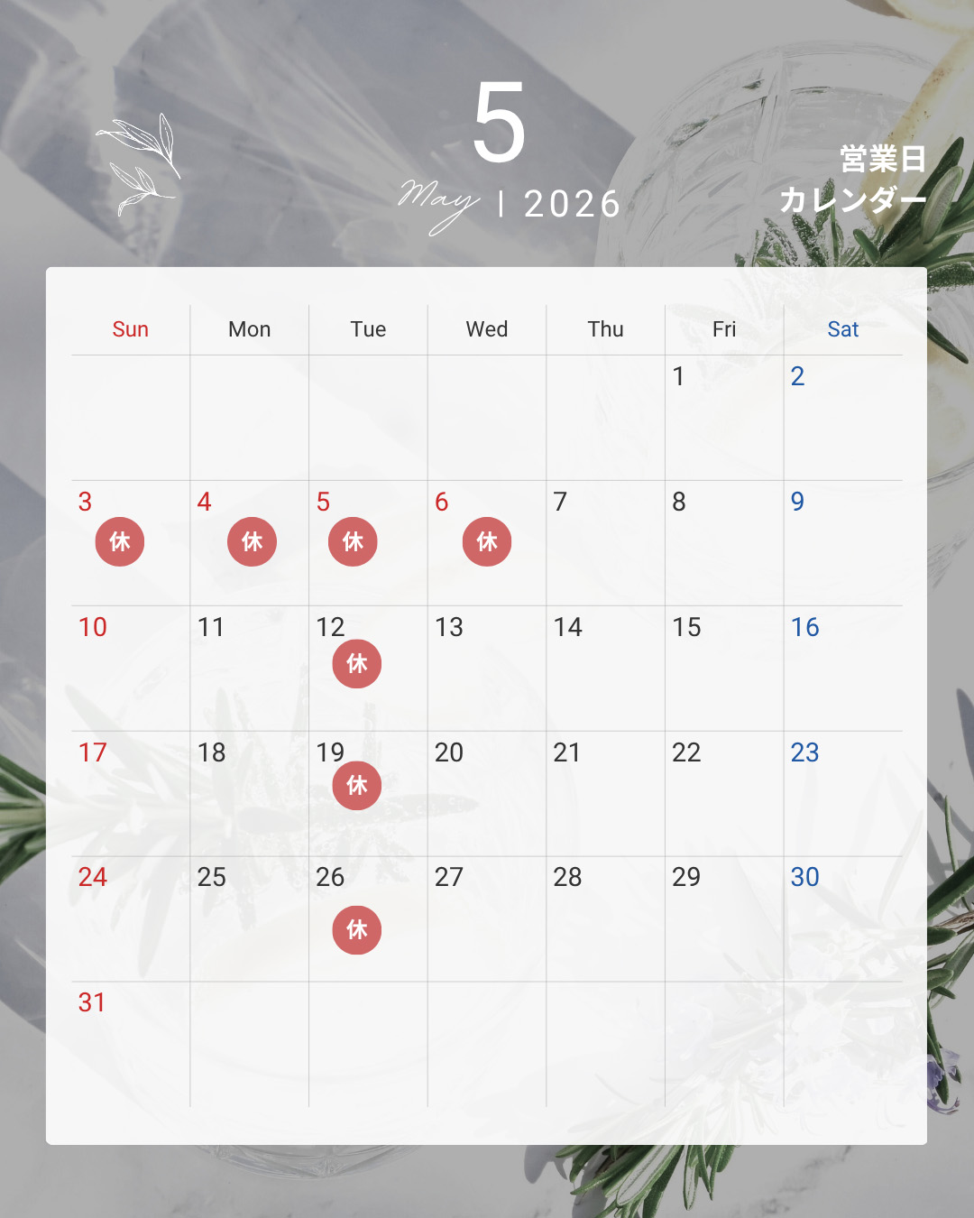 | 15:00〜19:30 | ● | ー | ● | ー | ● | ★ | ー | ー |