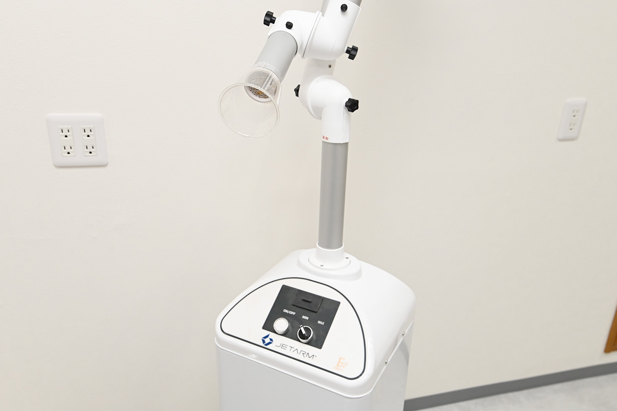 治療中に飛散する唾液や歯の削りかすなどを吸引し、空気中への拡散を防ぐ装置です。診療室のクリーンな環境を維持し、院内感染のリスクを低減します。