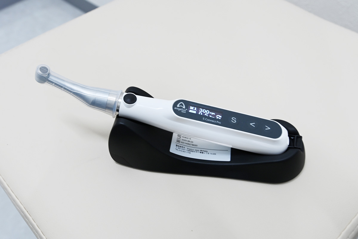 歯の神経が通っている根管の内部を清掃・形成するための機器です。根管治療では、細く湾曲した根管内を、ファイルの回転を制御できる根管治療用モーターを使うことで、より安全で正確に施術することができます。
