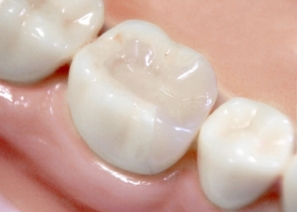 奥歯は食事の際に強い力がかかるため、被せ物には十分な強度が必要です。CAD/CAM冠は、通常の噛む力には対応できる設計ですが、セラミックに比べると割れやすい性質があります。噛み合わせの状態によっては、材料選択が重要になります。